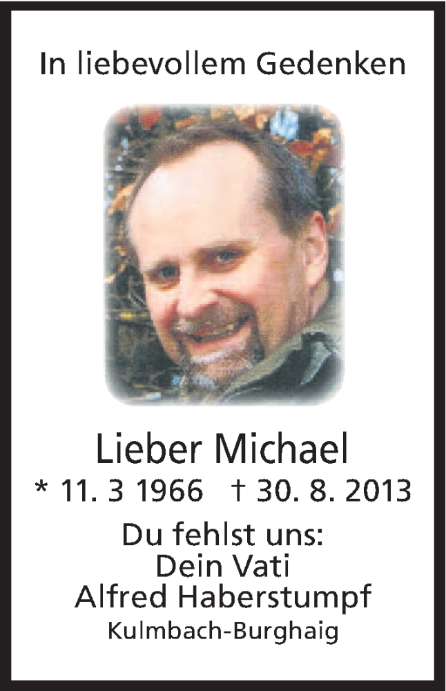 Hier finden Sie alle Traueranzeigen aus der Zeitung, die bisher für Michael erschienen sind. Weitere Traueranzeigen, die in der Zeitung erscheinen, werden hier ebenfalls aufgelistet
