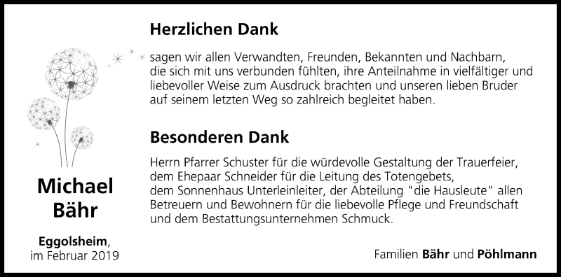 Hier finden Sie alle Traueranzeigen aus der Zeitung, die bisher für Michael Bähr erschienen sind. Weitere Traueranzeigen, die in der Zeitung erscheinen, werden hier ebenfalls aufgelistet