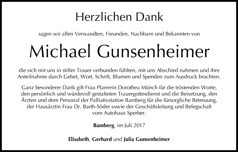Hier finden Sie alle Traueranzeigen aus der Zeitung, die bisher für Michael Gunsenheimer erschienen sind. Weitere Traueranzeigen, die in der Zeitung erscheinen, werden hier ebenfalls aufgelistet