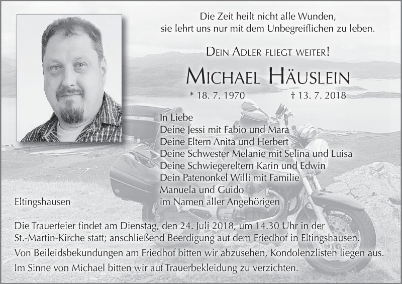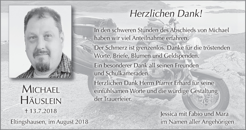 Hier finden Sie alle Traueranzeigen aus der Zeitung, die bisher für Michael Häuslein erschienen sind. Weitere Traueranzeigen, die in der Zeitung erscheinen, werden hier ebenfalls aufgelistet