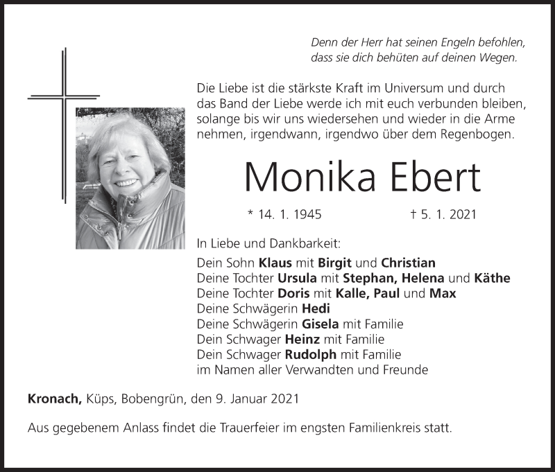 Hier finden Sie alle Traueranzeigen aus der Zeitung, die bisher für Monika Ebert erschienen sind. Weitere Traueranzeigen, die in der Zeitung erscheinen, werden hier ebenfalls aufgelistet