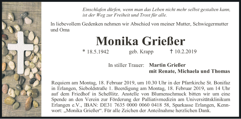 Hier finden Sie alle Traueranzeigen aus der Zeitung, die bisher für Monika Grießer erschienen sind. Weitere Traueranzeigen, die in der Zeitung erscheinen, werden hier ebenfalls aufgelistet