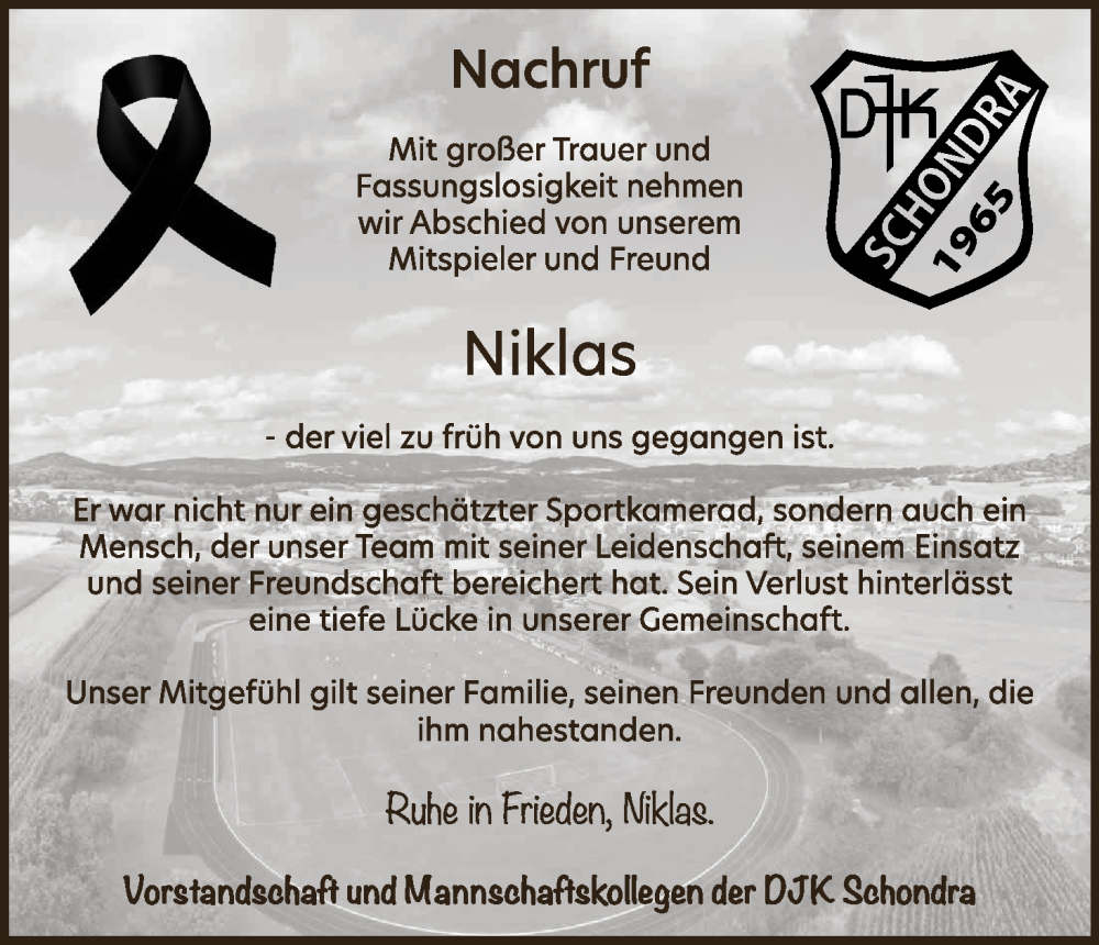 Hier finden Sie alle Traueranzeigen aus der Zeitung, die bisher für Niklas erschienen sind. Weitere Traueranzeigen, die in der Zeitung erscheinen, werden hier ebenfalls aufgelistet