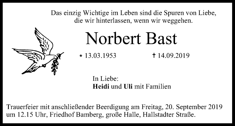Hier finden Sie alle Traueranzeigen aus der Zeitung, die bisher für Norbert Bast erschienen sind. Weitere Traueranzeigen, die in der Zeitung erscheinen, werden hier ebenfalls aufgelistet