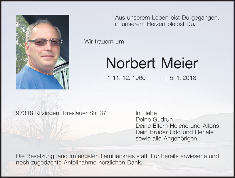 Hier finden Sie alle Traueranzeigen aus der Zeitung, die bisher für Norbert Meier erschienen sind. Weitere Traueranzeigen, die in der Zeitung erscheinen, werden hier ebenfalls aufgelistet