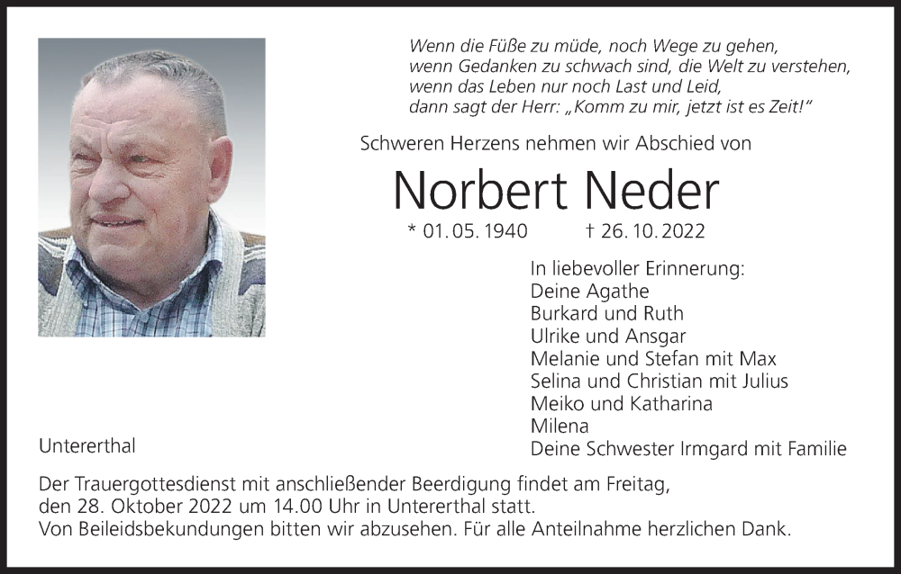 Hier finden Sie alle Traueranzeigen aus der Zeitung, die bisher für Norbert Neder erschienen sind. Weitere Traueranzeigen, die in der Zeitung erscheinen, werden hier ebenfalls aufgelistet