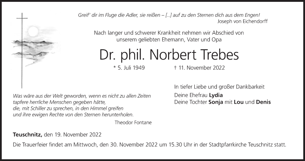 Hier finden Sie alle Traueranzeigen aus der Zeitung, die bisher für Norbert Trebes erschienen sind. Weitere Traueranzeigen, die in der Zeitung erscheinen, werden hier ebenfalls aufgelistet