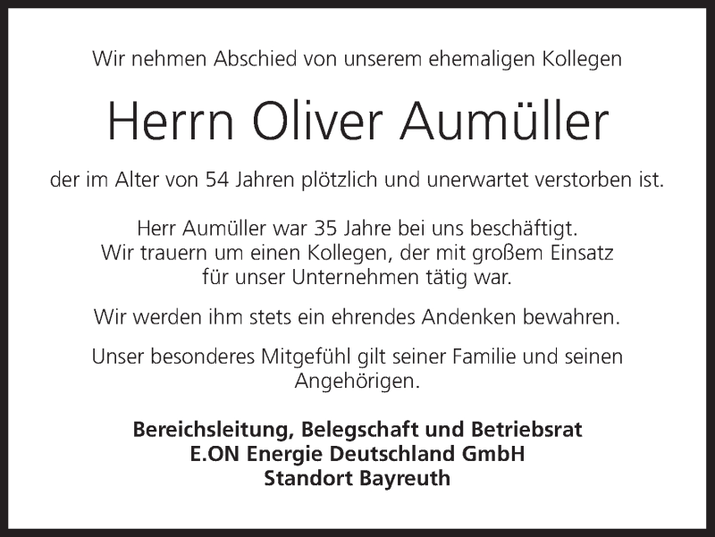 Hier finden Sie alle Traueranzeigen aus der Zeitung, die bisher für Oliver Aumüller erschienen sind. Weitere Traueranzeigen, die in der Zeitung erscheinen, werden hier ebenfalls aufgelistet