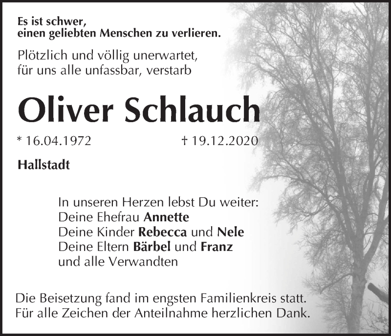Hier finden Sie alle Traueranzeigen aus der Zeitung, die bisher für Oliver Schlauch erschienen sind. Weitere Traueranzeigen, die in der Zeitung erscheinen, werden hier ebenfalls aufgelistet
