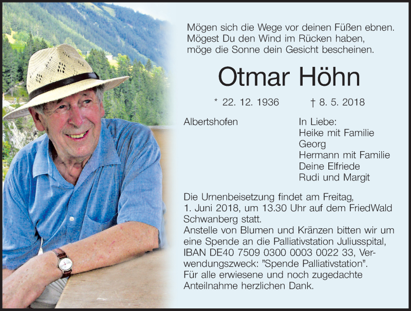 Hier finden Sie alle Traueranzeigen aus der Zeitung, die bisher für Otmar Höhn erschienen sind. Weitere Traueranzeigen, die in der Zeitung erscheinen, werden hier ebenfalls aufgelistet