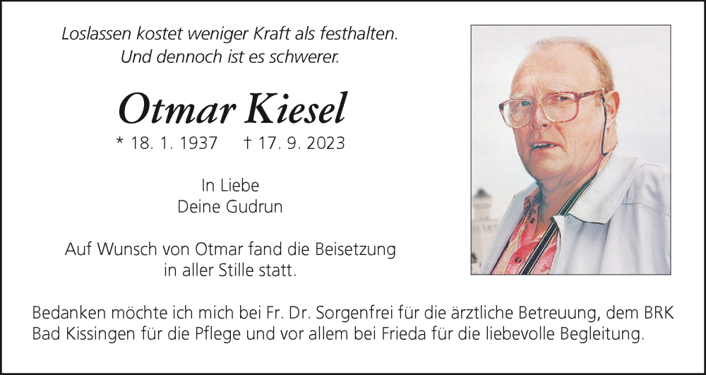 Hier finden Sie alle Traueranzeigen aus der Zeitung, die bisher für Otmar Kiesel erschienen sind. Weitere Traueranzeigen, die in der Zeitung erscheinen, werden hier ebenfalls aufgelistet