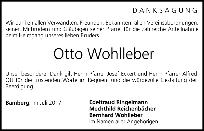 Hier finden Sie alle Traueranzeigen aus der Zeitung, die bisher für Otto Wohlleber erschienen sind. Weitere Traueranzeigen, die in der Zeitung erscheinen, werden hier ebenfalls aufgelistet