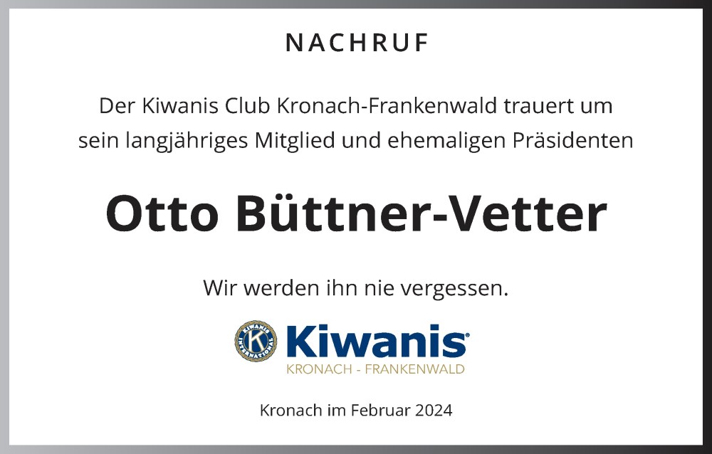 Hier finden Sie alle Traueranzeigen aus der Zeitung, die bisher für Otto Büttner-Vetter erschienen sind. Weitere Traueranzeigen, die in der Zeitung erscheinen, werden hier ebenfalls aufgelistet