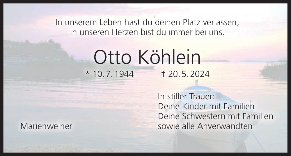 Hier finden Sie alle Traueranzeigen aus der Zeitung, die bisher für Otto Köhlein erschienen sind. Weitere Traueranzeigen, die in der Zeitung erscheinen, werden hier ebenfalls aufgelistet