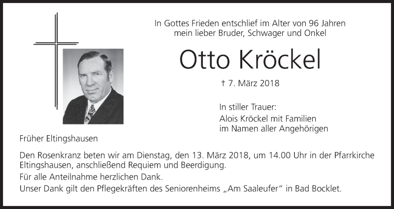Hier finden Sie alle Traueranzeigen aus der Zeitung, die bisher für Otto Kröckel erschienen sind. Weitere Traueranzeigen, die in der Zeitung erscheinen, werden hier ebenfalls aufgelistet
