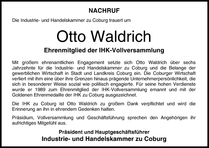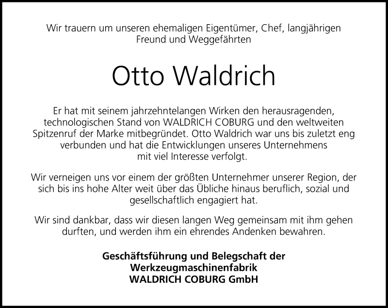 Hier finden Sie alle Traueranzeigen aus der Zeitung, die bisher für Otto Waldrich erschienen sind. Weitere Traueranzeigen, die in der Zeitung erscheinen, werden hier ebenfalls aufgelistet