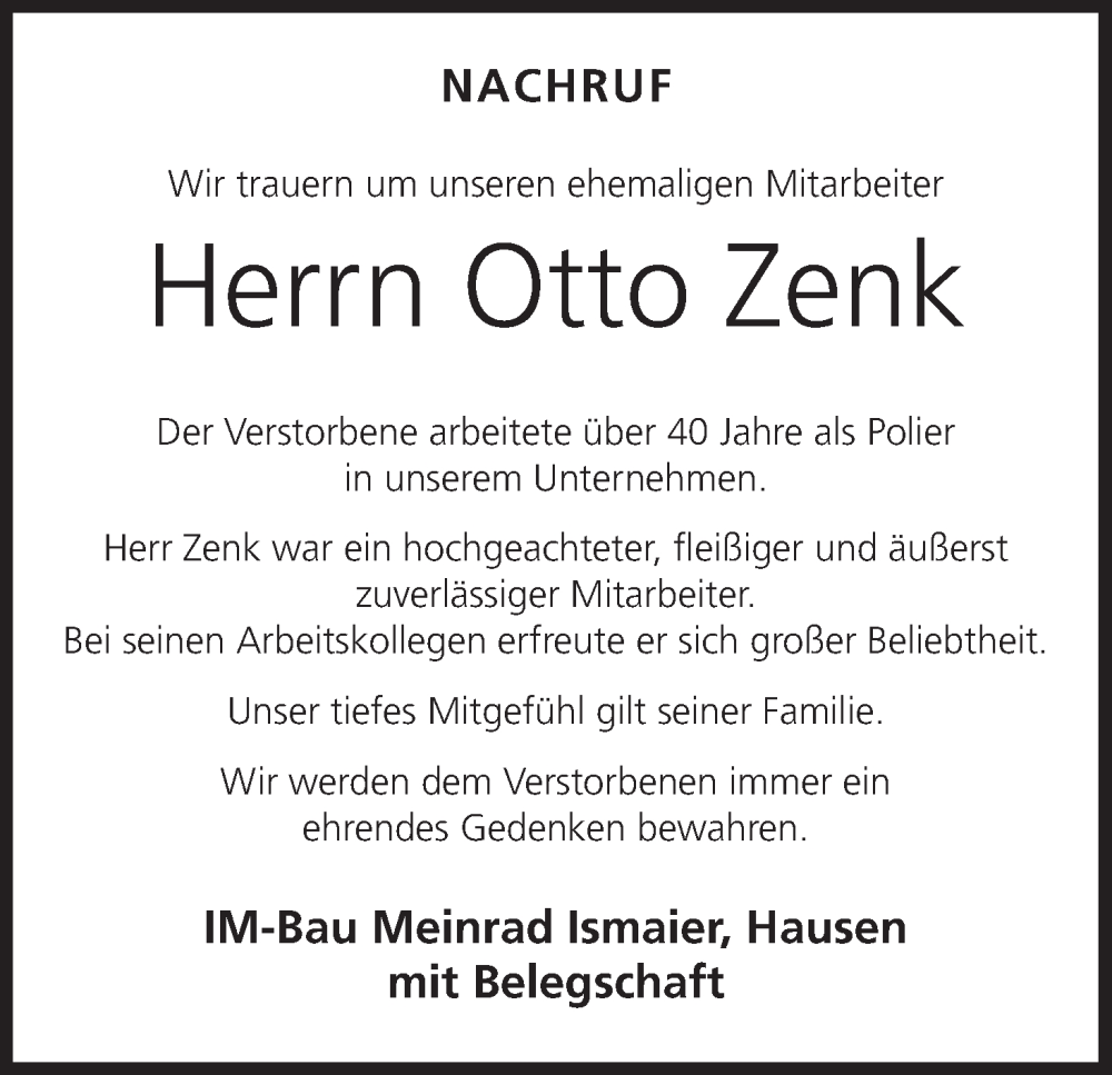 Hier finden Sie alle Traueranzeigen aus der Zeitung, die bisher für Otto Zenk erschienen sind. Weitere Traueranzeigen, die in der Zeitung erscheinen, werden hier ebenfalls aufgelistet