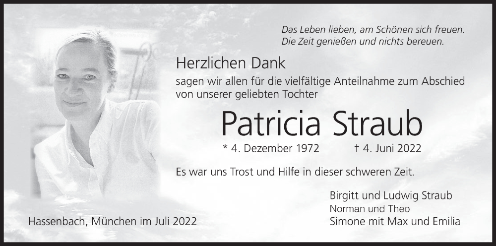 Hier finden Sie alle Traueranzeigen aus der Zeitung, die bisher für Patricia Straub erschienen sind. Weitere Traueranzeigen, die in der Zeitung erscheinen, werden hier ebenfalls aufgelistet