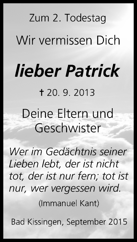 Hier finden Sie alle Traueranzeigen aus der Zeitung, die bisher für Patrick Deppisch erschienen sind. Weitere Traueranzeigen, die in der Zeitung erscheinen, werden hier ebenfalls aufgelistet