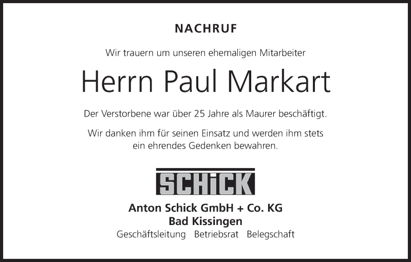 Hier finden Sie alle Traueranzeigen aus der Zeitung, die bisher für Paul Markart erschienen sind. Weitere Traueranzeigen, die in der Zeitung erscheinen, werden hier ebenfalls aufgelistet