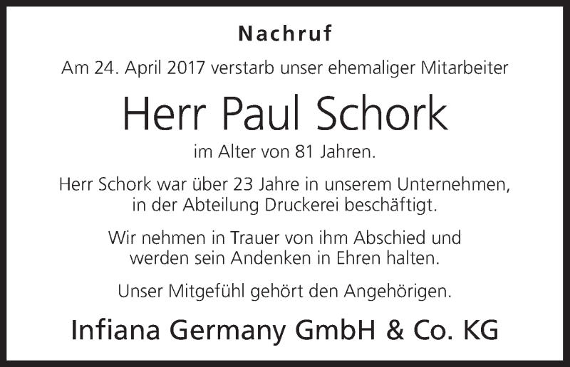 Hier finden Sie alle Traueranzeigen aus der Zeitung, die bisher für Paul Schork erschienen sind. Weitere Traueranzeigen, die in der Zeitung erscheinen, werden hier ebenfalls aufgelistet