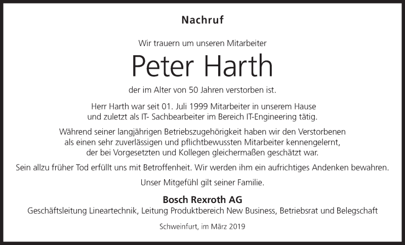 Hier finden Sie alle Traueranzeigen aus der Zeitung, die bisher für Peter Harth erschienen sind. Weitere Traueranzeigen, die in der Zeitung erscheinen, werden hier ebenfalls aufgelistet