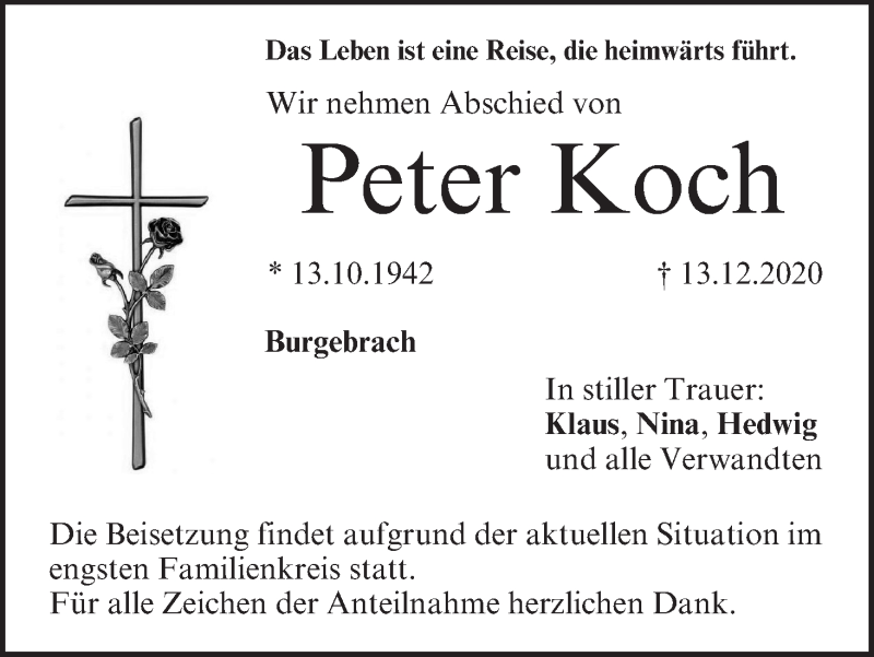 Hier finden Sie alle Traueranzeigen aus der Zeitung, die bisher für Peter Koch erschienen sind. Weitere Traueranzeigen, die in der Zeitung erscheinen, werden hier ebenfalls aufgelistet