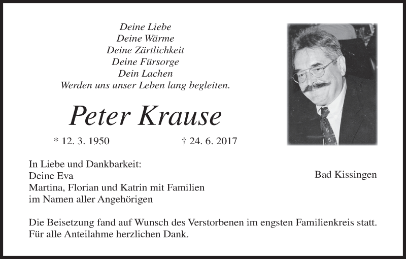 Hier finden Sie alle Traueranzeigen aus der Zeitung, die bisher für Peter Krause erschienen sind. Weitere Traueranzeigen, die in der Zeitung erscheinen, werden hier ebenfalls aufgelistet
