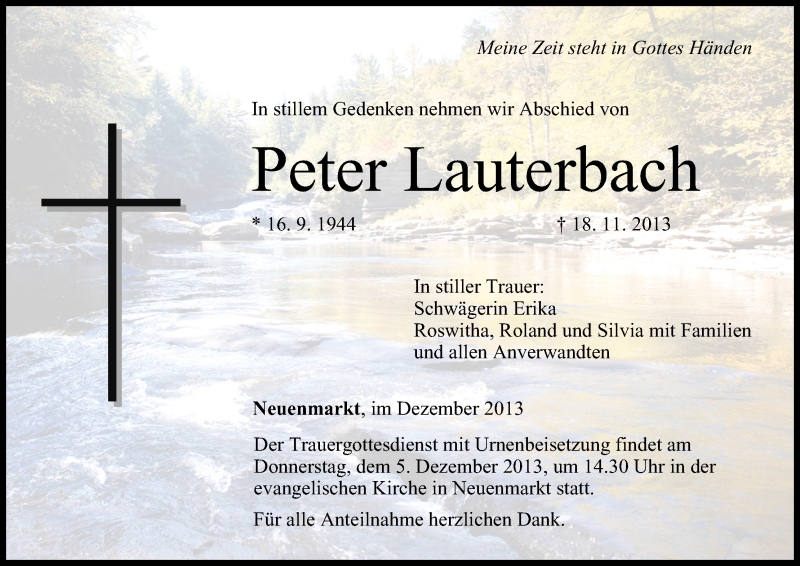Hier finden Sie alle Traueranzeigen aus der Zeitung, die bisher für Peter Lauterbach erschienen sind. Weitere Traueranzeigen, die in der Zeitung erscheinen, werden hier ebenfalls aufgelistet