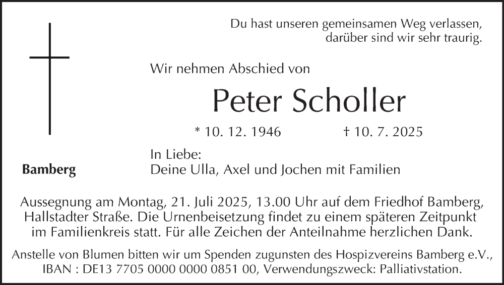 Hier finden Sie alle Traueranzeigen aus der Zeitung, die bisher für Peter Scholler erschienen sind. Weitere Traueranzeigen, die in der Zeitung erscheinen, werden hier ebenfalls aufgelistet