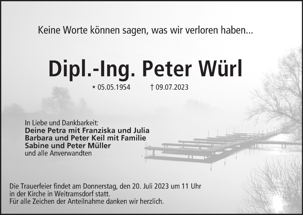 Hier finden Sie alle Traueranzeigen aus der Zeitung, die bisher für Peter Würl erschienen sind. Weitere Traueranzeigen, die in der Zeitung erscheinen, werden hier ebenfalls aufgelistet