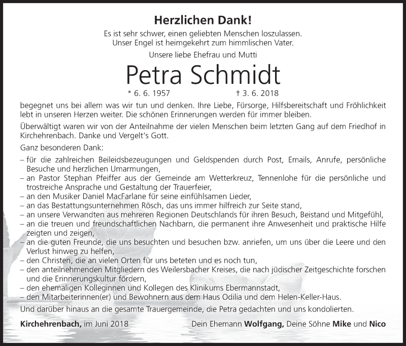 Hier finden Sie alle Traueranzeigen aus der Zeitung, die bisher für Petra Schmidt erschienen sind. Weitere Traueranzeigen, die in der Zeitung erscheinen, werden hier ebenfalls aufgelistet