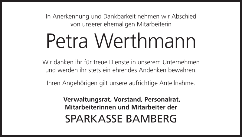Hier finden Sie alle Traueranzeigen aus der Zeitung, die bisher für Petra Werthmann erschienen sind. Weitere Traueranzeigen, die in der Zeitung erscheinen, werden hier ebenfalls aufgelistet