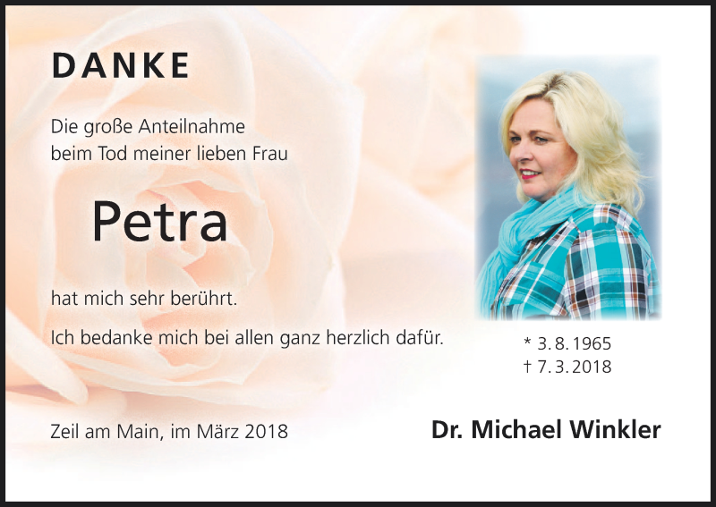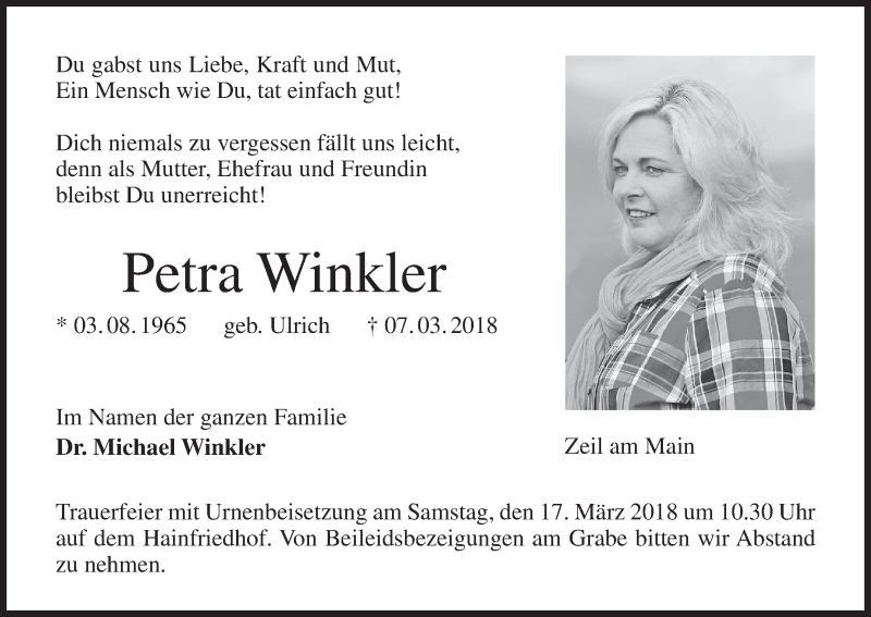 Hier finden Sie alle Traueranzeigen aus der Zeitung, die bisher für Petra Winkler erschienen sind. Weitere Traueranzeigen, die in der Zeitung erscheinen, werden hier ebenfalls aufgelistet