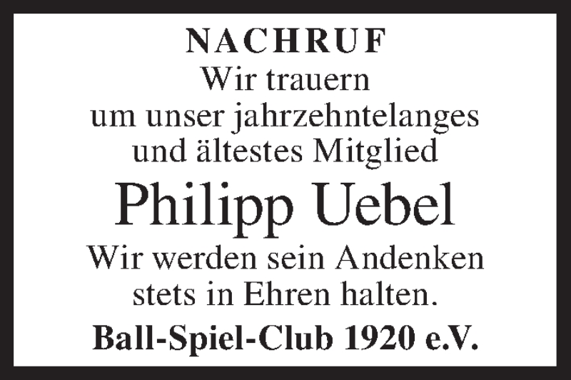 Hier finden Sie alle Traueranzeigen aus der Zeitung, die bisher für Philipp Uebel erschienen sind. Weitere Traueranzeigen, die in der Zeitung erscheinen, werden hier ebenfalls aufgelistet