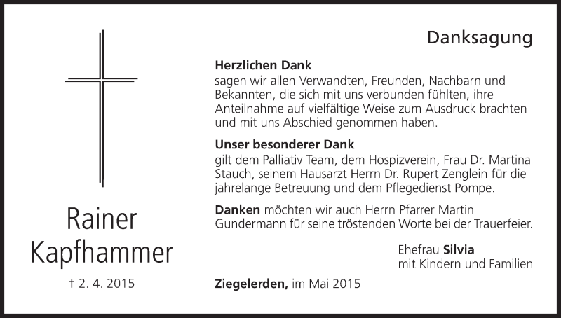 Hier finden Sie alle Traueranzeigen aus der Zeitung, die bisher für Rainer Kapfhammer erschienen sind. Weitere Traueranzeigen, die in der Zeitung erscheinen, werden hier ebenfalls aufgelistet