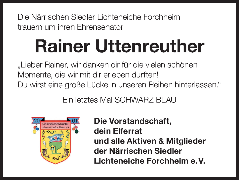 Hier finden Sie alle Traueranzeigen aus der Zeitung, die bisher für Rainer Uttenreuther erschienen sind. Weitere Traueranzeigen, die in der Zeitung erscheinen, werden hier ebenfalls aufgelistet