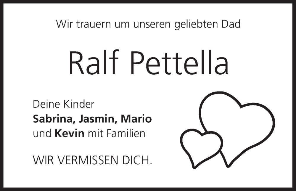 Hier finden Sie alle Traueranzeigen aus der Zeitung, die bisher für Ralf Pettella erschienen sind. Weitere Traueranzeigen, die in der Zeitung erscheinen, werden hier ebenfalls aufgelistet