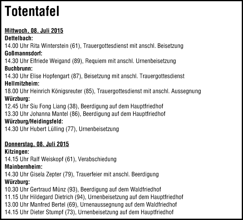 Hier finden Sie alle Traueranzeigen aus der Zeitung, die bisher für Ralf Weiskopf erschienen sind. Weitere Traueranzeigen, die in der Zeitung erscheinen, werden hier ebenfalls aufgelistet