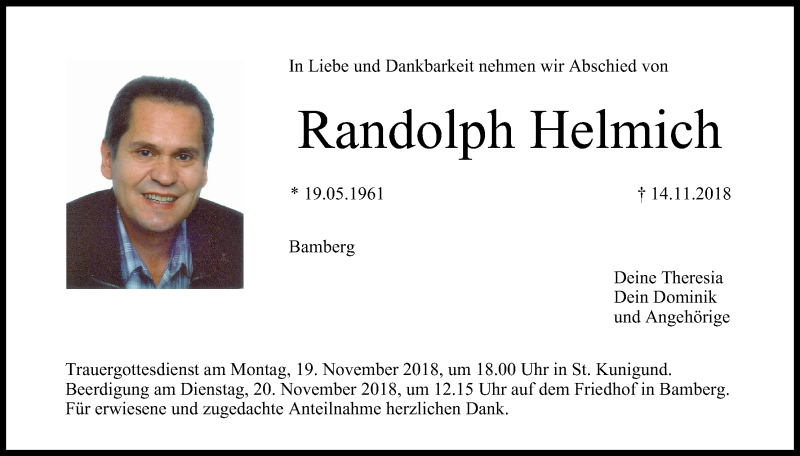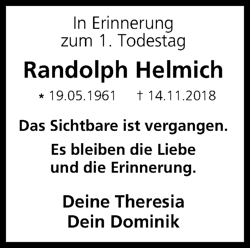 Hier finden Sie alle Traueranzeigen aus der Zeitung, die bisher für Randolph Helmich erschienen sind. Weitere Traueranzeigen, die in der Zeitung erscheinen, werden hier ebenfalls aufgelistet