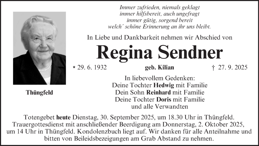 Hier finden Sie alle Traueranzeigen aus der Zeitung, die bisher für Regina Sendner erschienen sind. Weitere Traueranzeigen, die in der Zeitung erscheinen, werden hier ebenfalls aufgelistet