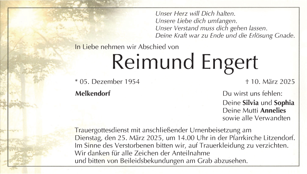 Hier finden Sie alle Traueranzeigen aus der Zeitung, die bisher für Reimund Engert erschienen sind. Weitere Traueranzeigen, die in der Zeitung erscheinen, werden hier ebenfalls aufgelistet