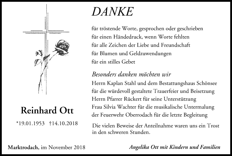 Hier finden Sie alle Traueranzeigen aus der Zeitung, die bisher für Reinhard Ott erschienen sind. Weitere Traueranzeigen, die in der Zeitung erscheinen, werden hier ebenfalls aufgelistet