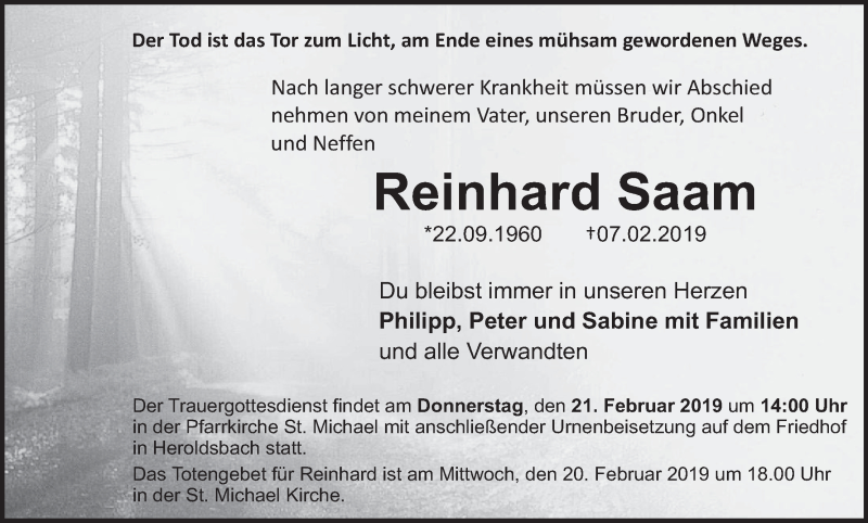 Hier finden Sie alle Traueranzeigen aus der Zeitung, die bisher für Reinhard Saam erschienen sind. Weitere Traueranzeigen, die in der Zeitung erscheinen, werden hier ebenfalls aufgelistet