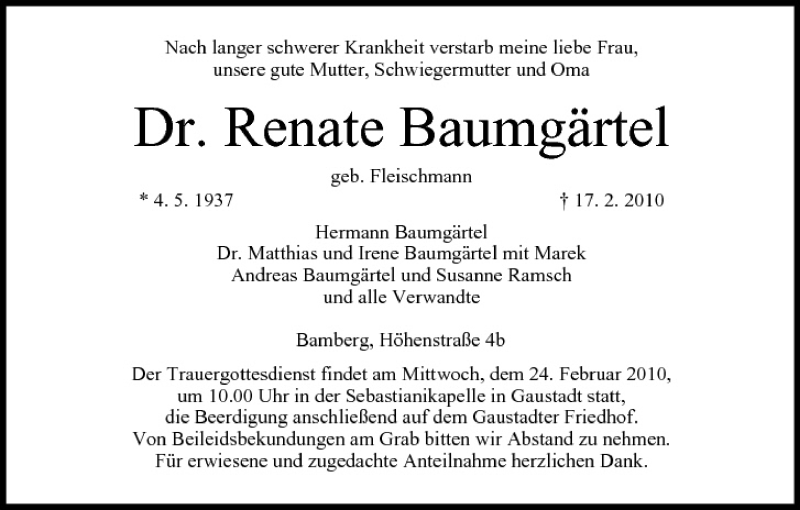 Hier finden Sie alle Traueranzeigen aus der Zeitung, die bisher für Renate Baumgärtel erschienen sind. Weitere Traueranzeigen, die in der Zeitung erscheinen, werden hier ebenfalls aufgelistet