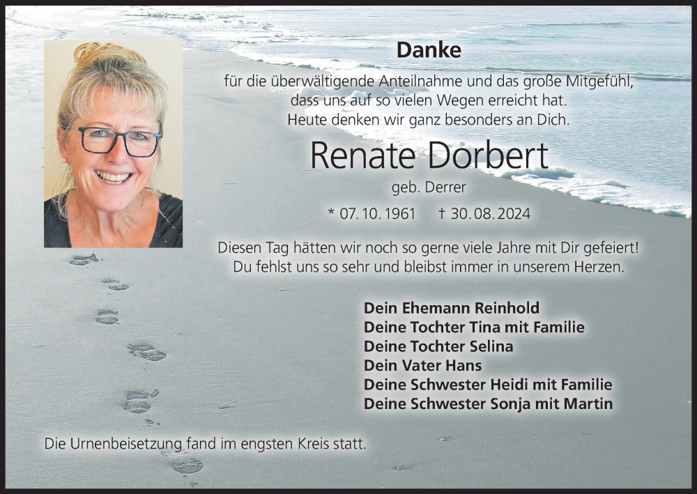 Hier finden Sie alle Traueranzeigen aus der Zeitung, die bisher für Renate Dorbert erschienen sind. Weitere Traueranzeigen, die in der Zeitung erscheinen, werden hier ebenfalls aufgelistet
