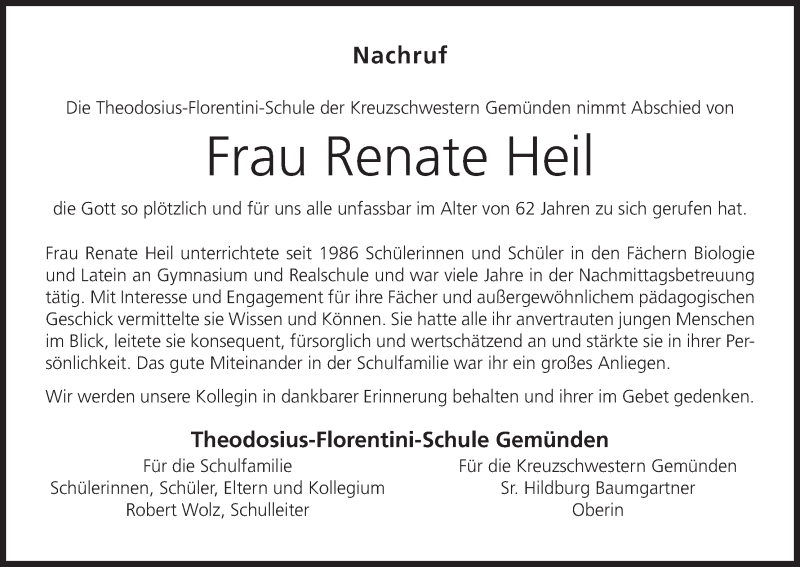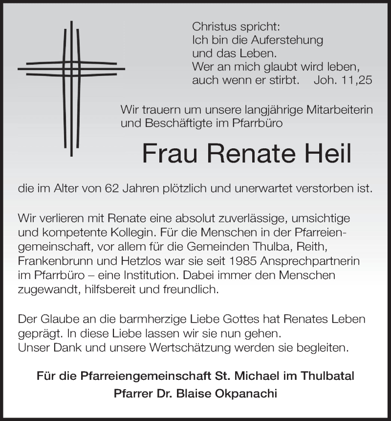 Hier finden Sie alle Traueranzeigen aus der Zeitung, die bisher für Renate Heil erschienen sind. Weitere Traueranzeigen, die in der Zeitung erscheinen, werden hier ebenfalls aufgelistet