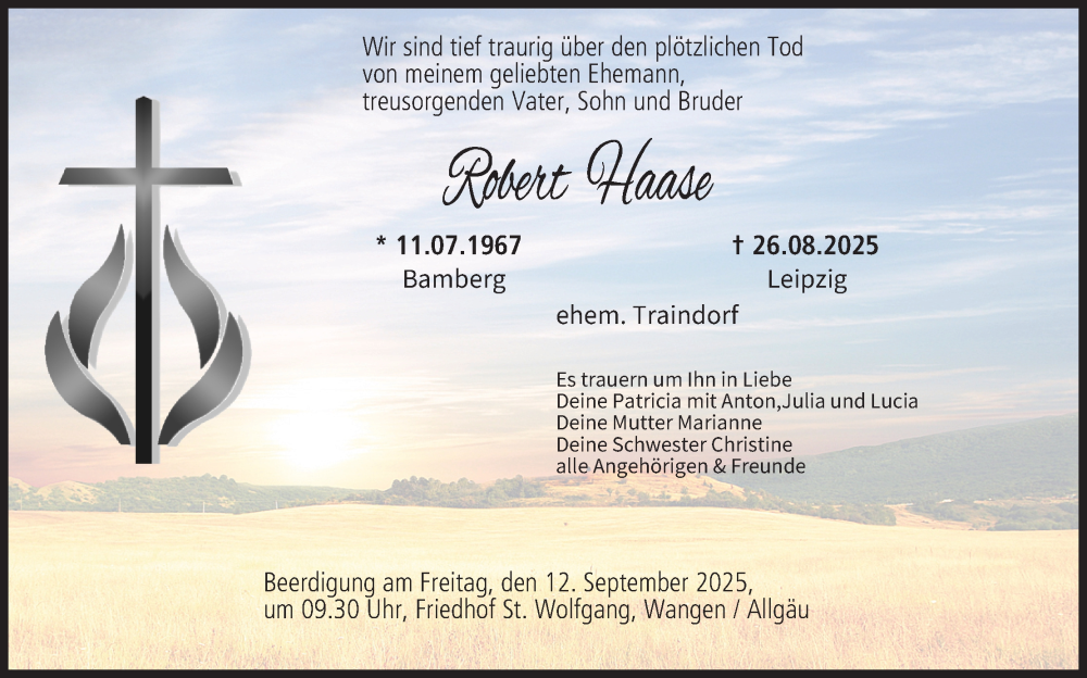 Hier finden Sie alle Traueranzeigen aus der Zeitung, die bisher für Robert Haase erschienen sind. Weitere Traueranzeigen, die in der Zeitung erscheinen, werden hier ebenfalls aufgelistet