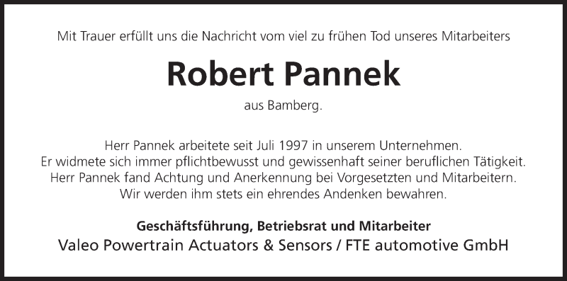 Hier finden Sie alle Traueranzeigen aus der Zeitung, die bisher für Robert Pannek erschienen sind. Weitere Traueranzeigen, die in der Zeitung erscheinen, werden hier ebenfalls aufgelistet