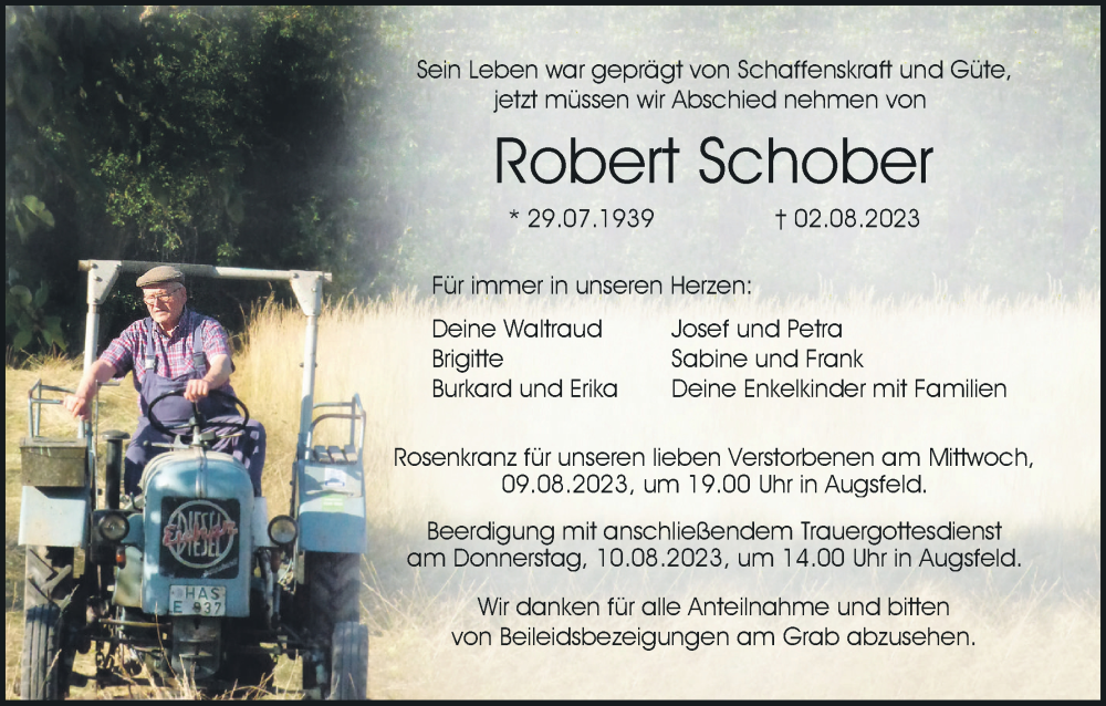 Hier finden Sie alle Traueranzeigen aus der Zeitung, die bisher für Robert Schober erschienen sind. Weitere Traueranzeigen, die in der Zeitung erscheinen, werden hier ebenfalls aufgelistet